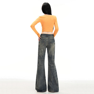 秋季新款喇叭牛仔裤女不贴腿设计感辣妹高腰复古宽松拖地马蹄裤子