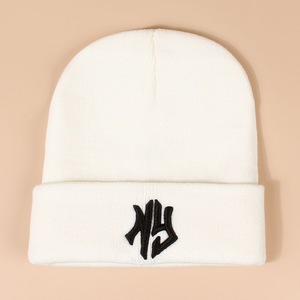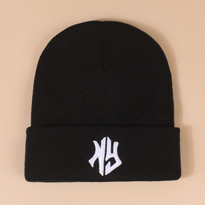 韩版秋冬新款毛线帽刺绣情侣针织帽子潮牌男女同款保暖帽户外冷帽
