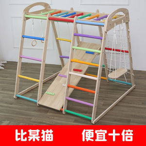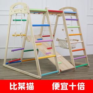 早教玩具儿童攀爬架室内家用滑滑梯实木小型宝宝秋千组合家庭乐园