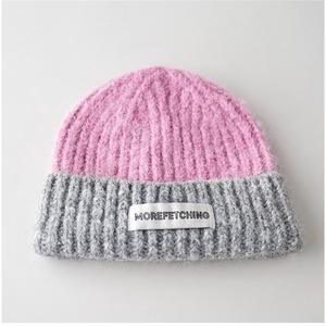 贴布MORE拼色针织帽粉顶灰边