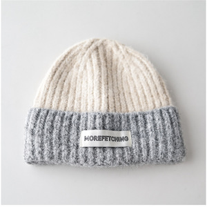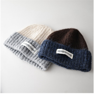 贴布MORE拼色针织帽米顶灰边