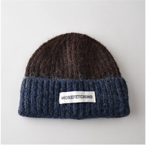 贴布MORE拼色针织帽咖顶蓝边