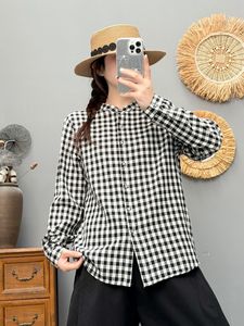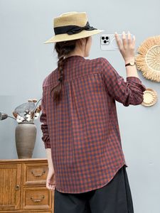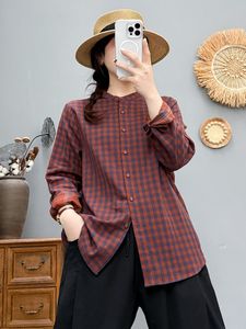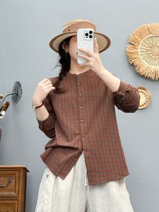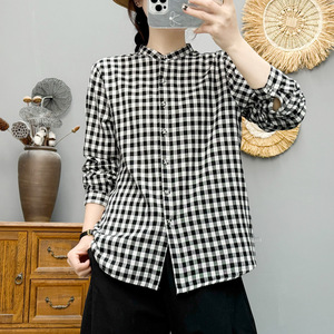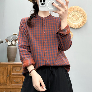 立领小格子长袖衬衫女 2025春秋新款色织双层棉纱格子衬衣 批发
