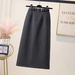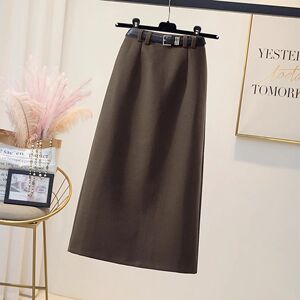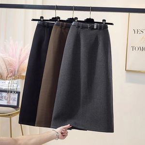 美拉德加厚毛呢开叉过膝高腰包臀半身裙女秋冬款小个中长款裙子潮