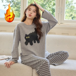 德绒睡衣女士2025冬季长袖长裤套装卡通甜美可爱蚕丝羊毛绒家居服