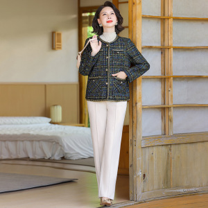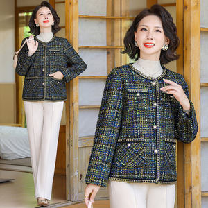 妈妈洋气小香风外套女2025秋季新款女士秋装时尚粗花呢高级感上衣