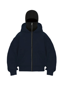 跨境欧码2025秋冬款青少年休闲宽松双帽子上衣男装卫衣拉链外套