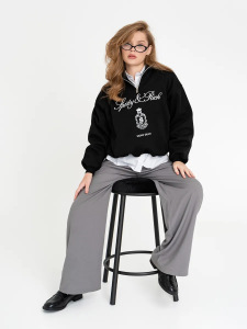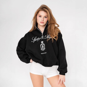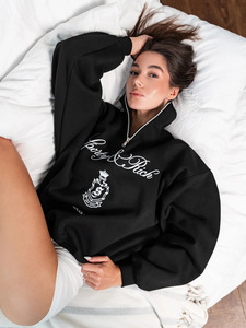时尚个性潮牌小众洋气字母印花2025秋冬季加厚翻领半拉链宽松卫衣