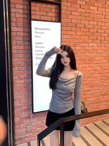 法式纯欲风温柔荡领长袖t恤女秋冬慵懒松弛感修身内搭打底衫上衣
