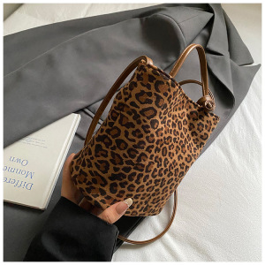水桶包包女2025新款小众设计女包高级感豹纹单肩包磨砂皮斜挎小包