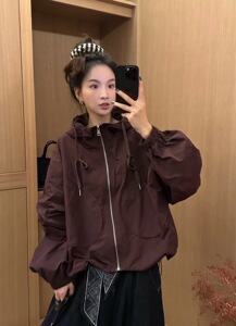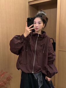 2025欧货时尚宽松大版冲锋衣连帽外套女秋季休闲百搭夹克上衣潮