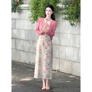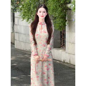 新中式日常百搭【冷清秋】国风清冷改良花色旗袍2025秋长袖连衣裙