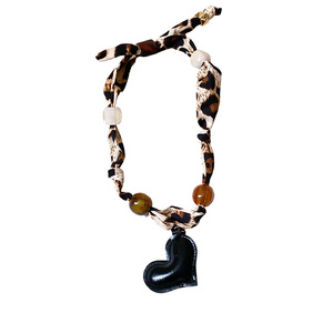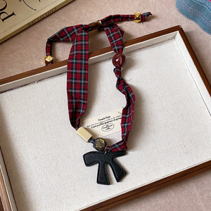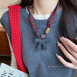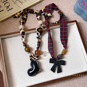 布艺树脂串珠皮革爱心蝴蝶结项链轻奢小众毛衣链复古风时尚项饰女