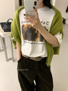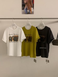 MZI STUDIO秋季时尚高街人像字母印花百搭圆领套头短袖T恤女13858