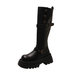 大码美拉德长筒靴女2025秋冬新款胖mm粗腿增高骑士靴小个子高筒靴
