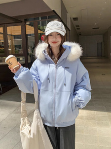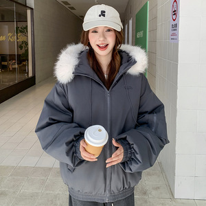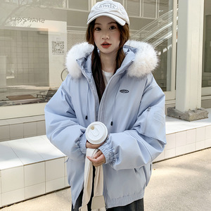 跨境实拍棉服女大毛领连帽2025新款冬季韩系冬装宽松加厚棉袄外套