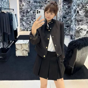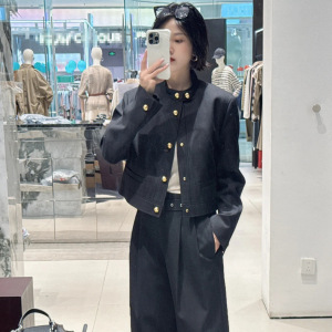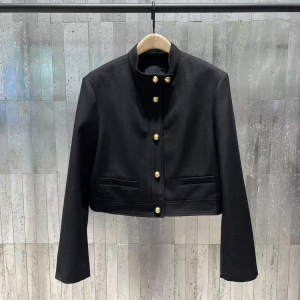 垫肩雕花金扣短款箱型立领外套女 2025年秋新品挺括气质通勤上衣