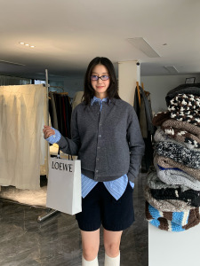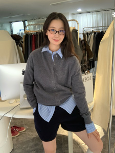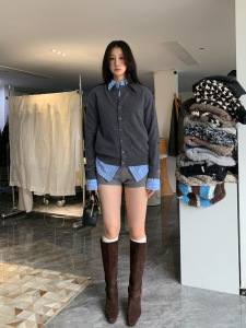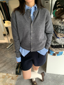 SROOM十三行美丽诺全羊毛针织衫女圆领开衫春秋外搭上衣秋冬毛衣