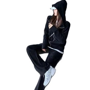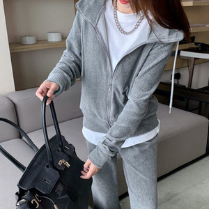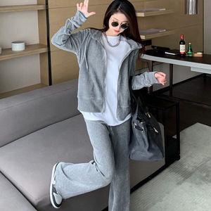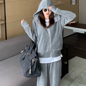 休闲运动套装女春秋季新款时尚宽松洋气连帽开衫卫衣阔腿裤两件套