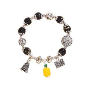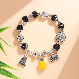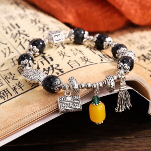 复古黑色串珠琉璃苏长命富贵平安锁招桃花祈福民族风手链手串