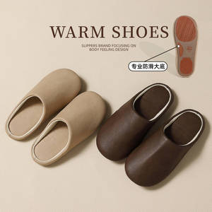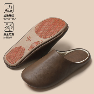 静音拖鞋女款冬天四季软底无声室内家居保暖防滑泼水PU皮棉拖春秋