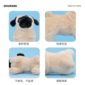 跨境亚马逊热销现货仿真动物可爱儿童生日礼物八哥犬毛绒玩具玩偶