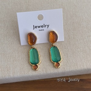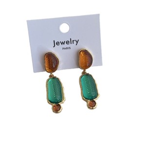 时髦港风树脂复古撞色果冻感耳钉女小众轻奢气质高级感耳环耳饰品