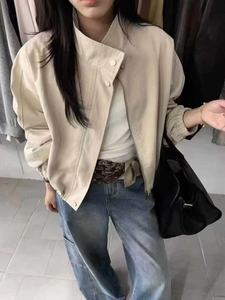 25年秋款外套女长袖立领风衣夹克外套宽松休闲韩版学院风外套上衣