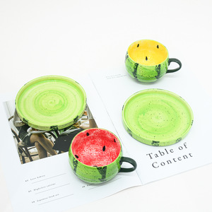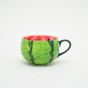 手绘陶瓷咖啡杯高颜值釉下彩水杯可爱西瓜杯子家用创意儿童牛奶杯