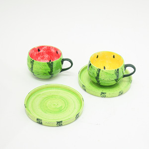 蛋形黄色西瓜咖啡杯+碟子