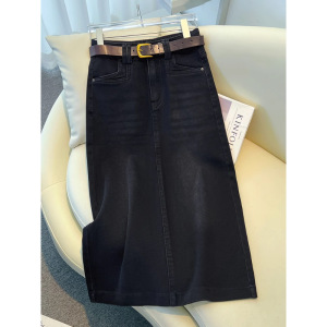 黑色时尚半身裙女春秋季2025新款高腰百搭直筒裙中长款a字包臀裙