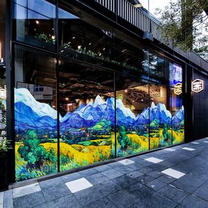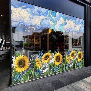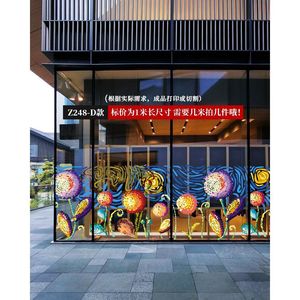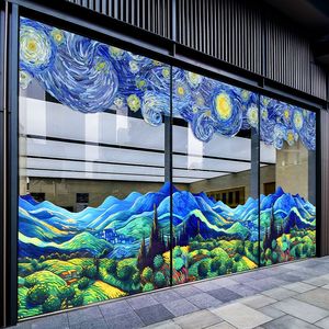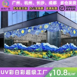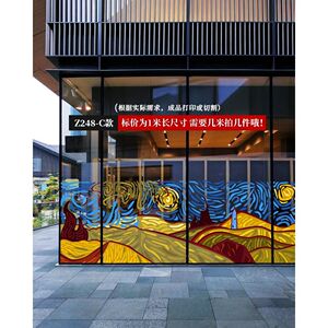 梵高星空油画玻璃贴纸静电腰线底纹幼儿园画室橱窗玻璃门玻璃窗