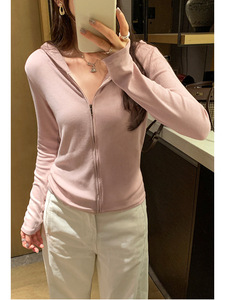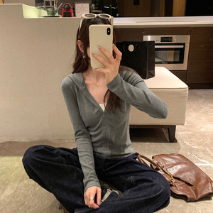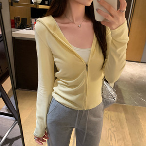 拉链长袖连帽短款外套女早秋韩系修身显瘦休闲百搭显瘦开衫上衣
