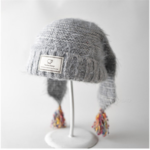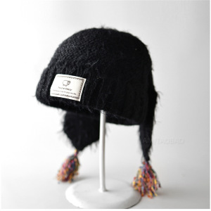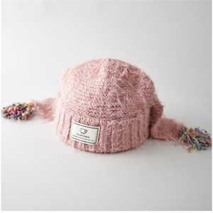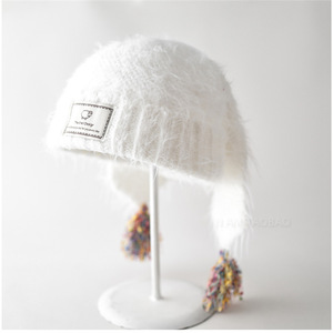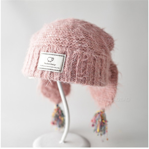 秋冬新款毛绒兔耳朵针织帽女甜美软萌可爱保暖百搭毛线帽子