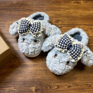 可爱卡通蝴蝶结包头毛毛拖鞋女外穿2025新款秋冬室内居家保暖棉拖