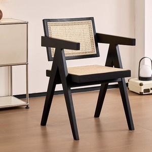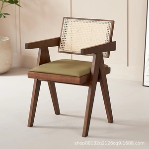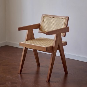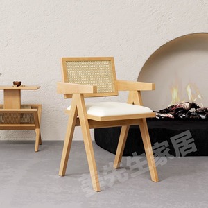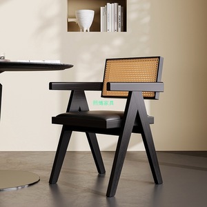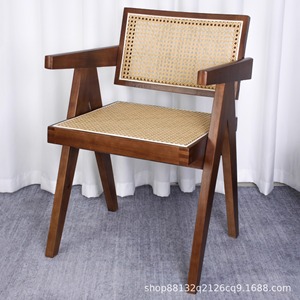 中古侘寂风昌迪加尔椅藤编椅子实木餐椅家用餐桌椅凳子靠背椅藤椅