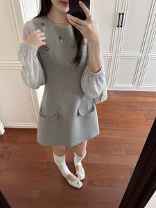 DIGM | 2025秋冬法式重工钉珠收腰拼接背心裙短裙连衣裙女A10973