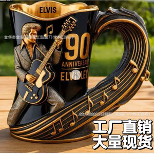 跨境新品独立站新品猫王90周年纪念树脂带内胆平口马克杯