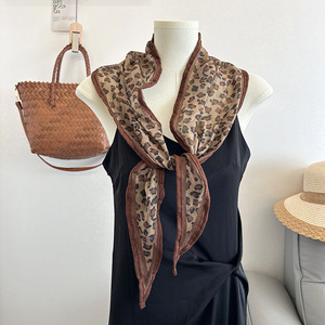2025新品复古风~时髦豹点棉麻菱形巾丝巾日系春夏薄款围巾菱形巾