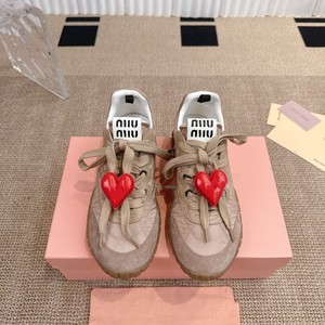 miu家运动鞋秋冬新款真皮复古厚底休闲鞋小爱心德训阿甘鞋老爹鞋