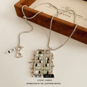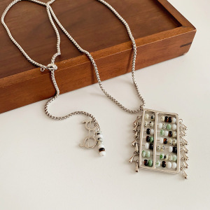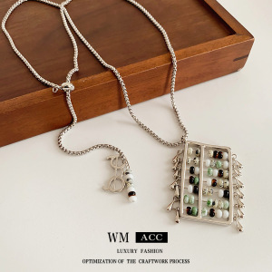 钛钢算盘水滴项链长款吊坠新中式毛衣链时尚休闲百搭饰品女高级感