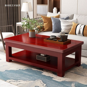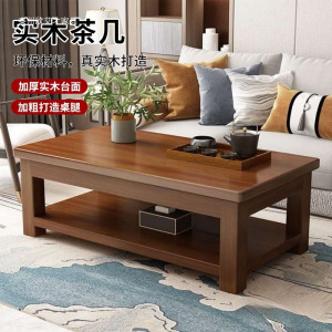 实木茶几家用客厅茶台现代简约长方形便宜出租房中式双层储物