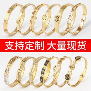 欧美跨境汤丽家tb钛钢手镯不掉色饰品光面镶钻轻奢手环手饰首饰