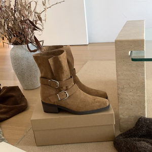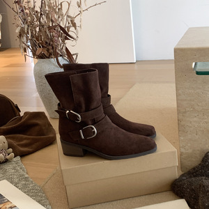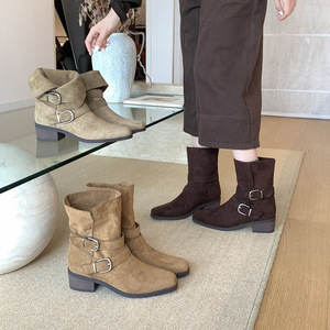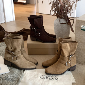 MARCO&JOYCE韩版小众街方头西部牛仔靴女秋季粗跟雪地靴时装女靴