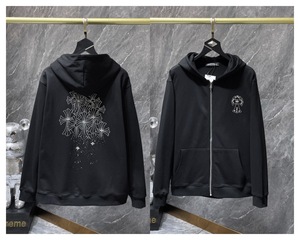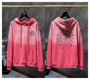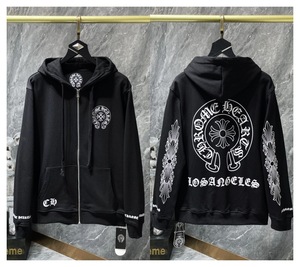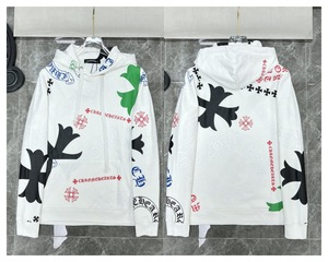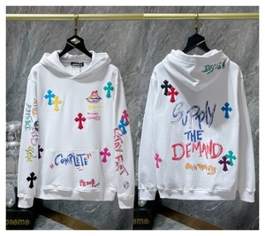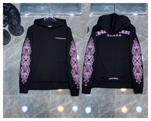 25ss高品质潮牌跨境美式 CH 秋冬新款梵文马蹄花臂十字架连帽卫衣