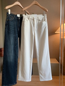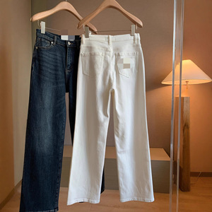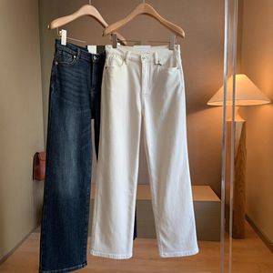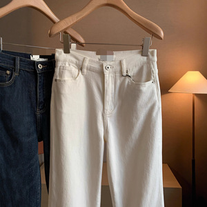 2025秋季新款简约时尚百搭风高腰设计做旧直筒牛仔裤批发