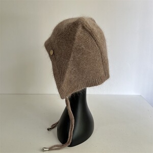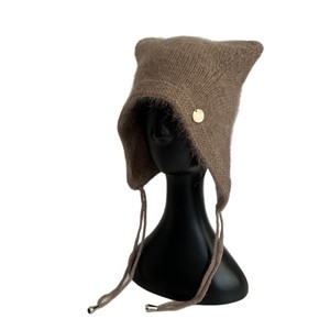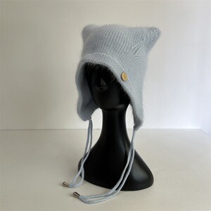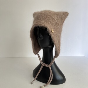 韩系可爱猫咪耳朵兔毛绒针织雷锋帽子秋冬新款保暖护耳绑带套头帽
