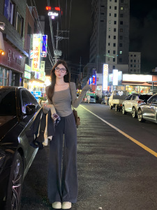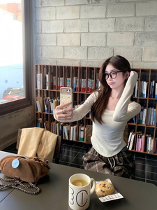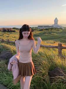 白水女 百搭掐腰T 方领T恤女初秋韩系修身显瘦别致长袖上衣