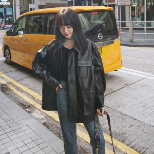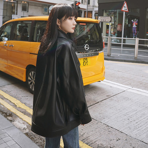 复古皮衣外套女2025年秋新款廓形中长款宽松港风机车pu皮夹克潮