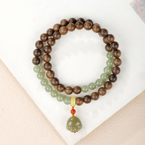 九分沉奇楠沉香手串浅晴水和田玉猫爪吊坠手饰中古风檀香手链女生